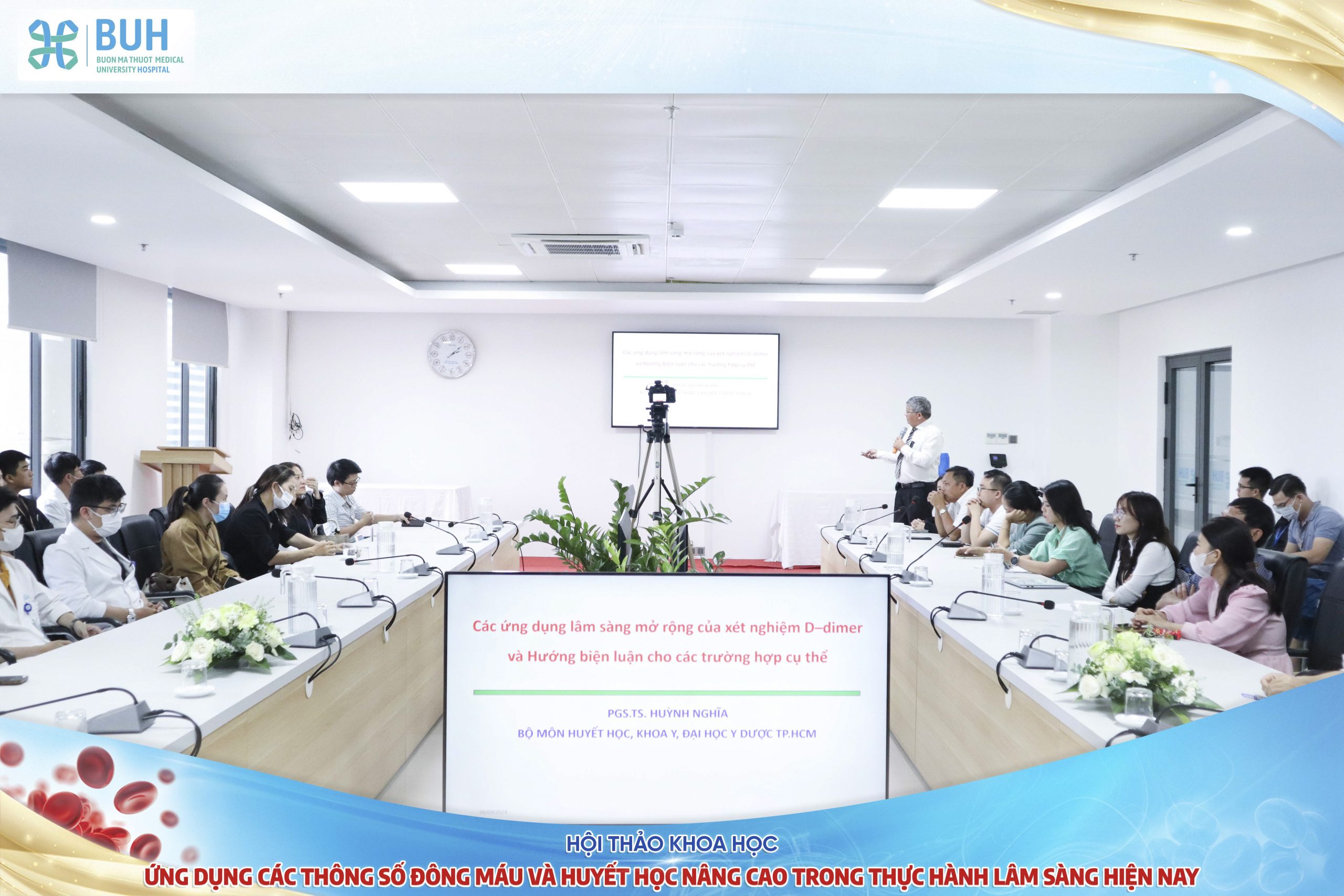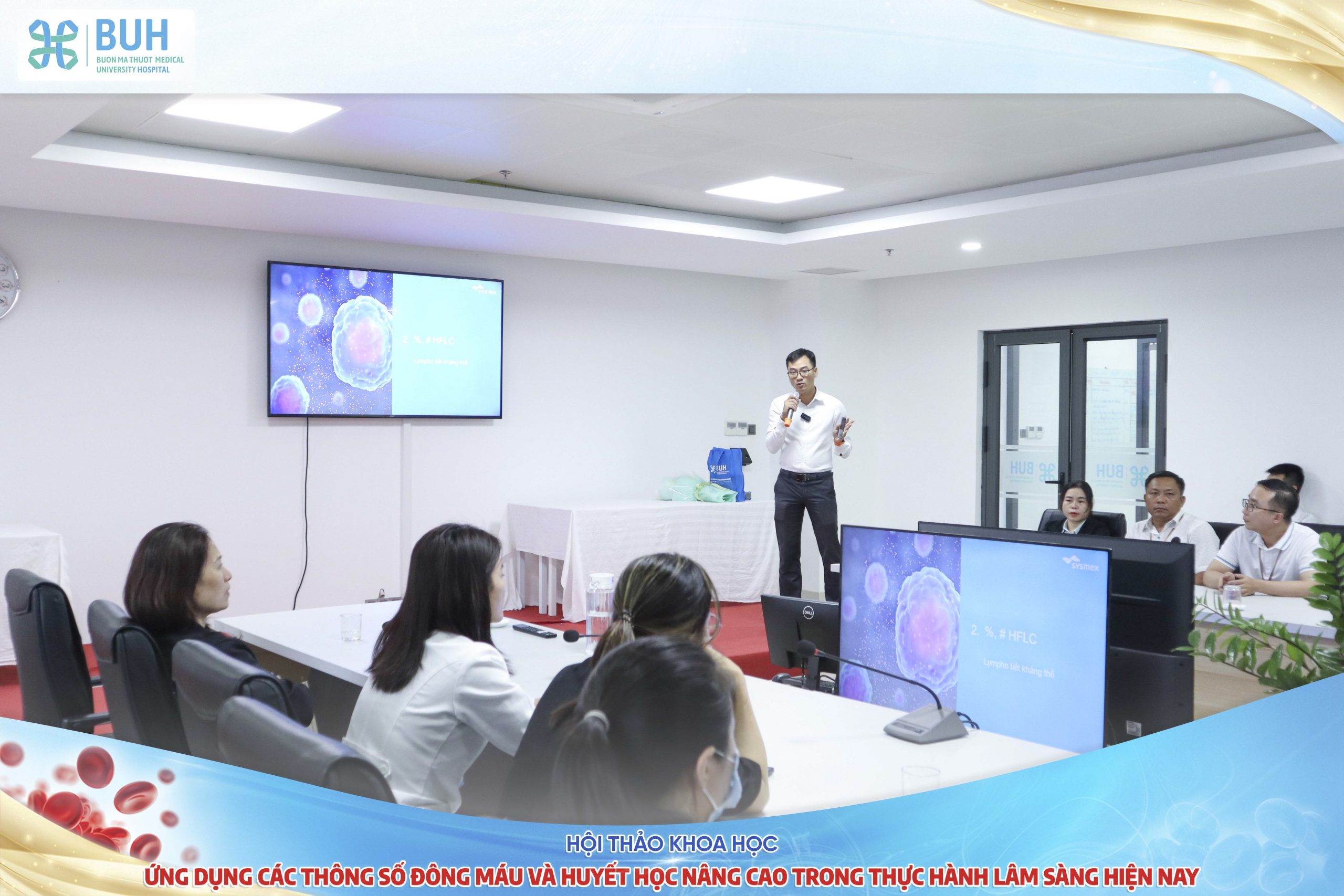 Phát biểu khai mạc buổi giới thiệu, BSCKII. Võ Minh Thành – Giám đốc Bệnh viện Đại học Y Dược Buôn Ma Thuột chia sẻ: “Các vấn đề liên quan đến đông máu và huyết học luôn là một trong những thách thức lớn đối với các bác sĩ lâm sàng. Với sự phát triển nhanh chóng của các xét nghiệm và công nghệ y tế, việc hiểu rõ và ứng dụng các thông số đông máu và huyết học nâng cao là điều vô cùng cần thiết. Vì vậy các buổi hội thảo khoa học như thế này là cơ hội quý báu để các bác sĩ, đặc biệt là những người làm việc trong lĩnh vực huyết học, được cập nhật những kiến thức mới, chia sẻ kinh nghiệm và cùng nhau nâng cao chất lượng khám chữa bệnh”